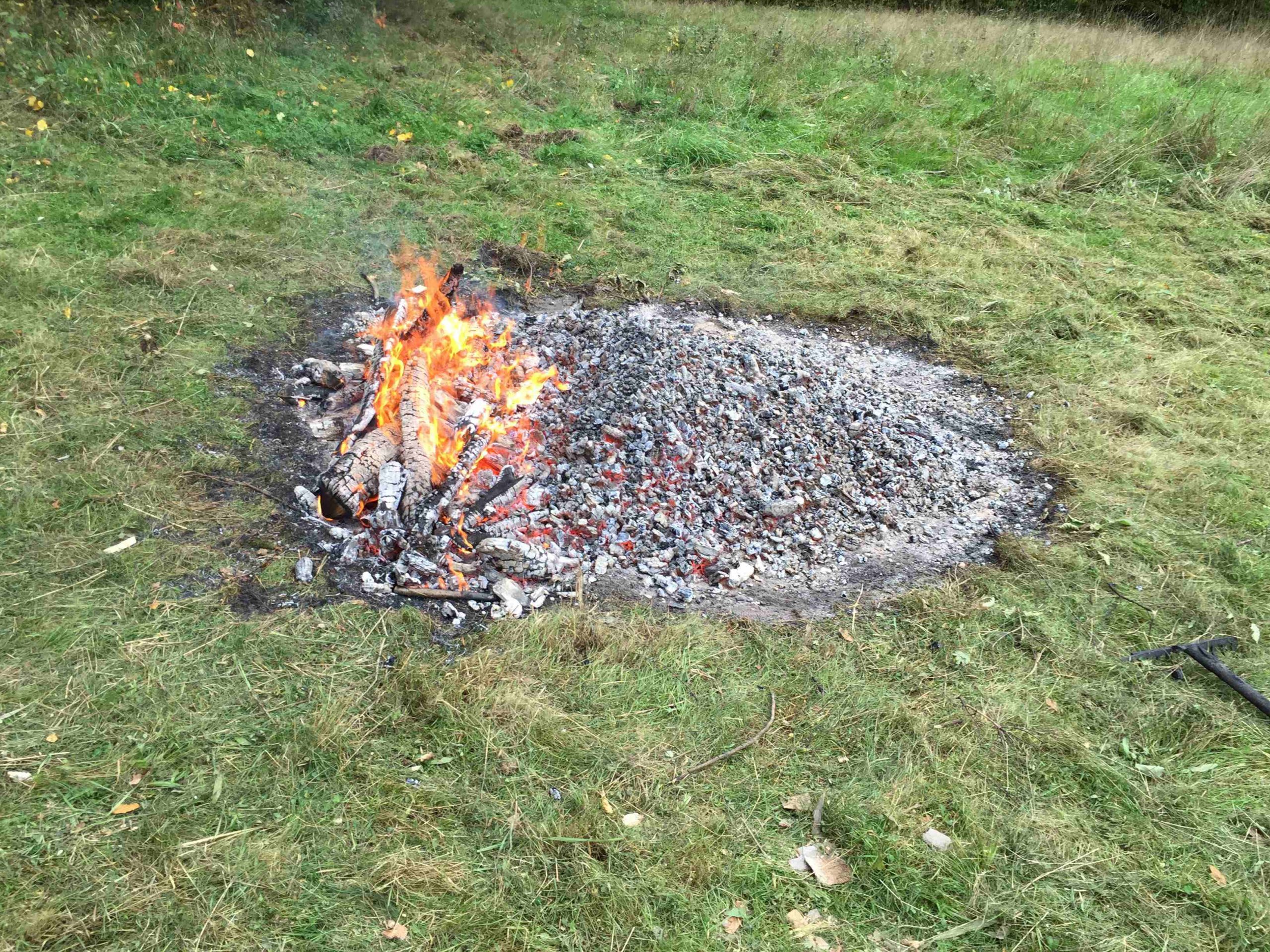 Für das Feuer muss ausreichend Brennholz vorhanden sein. Am besten eignet sich Holz von Laubbäumen, hier vorzugsweise Buche. Dieses Holz brennt im Gegensatz zu Nadelbaumholz nicht zu schnell ab und ergibt viel Glut, die auch lange anhält.