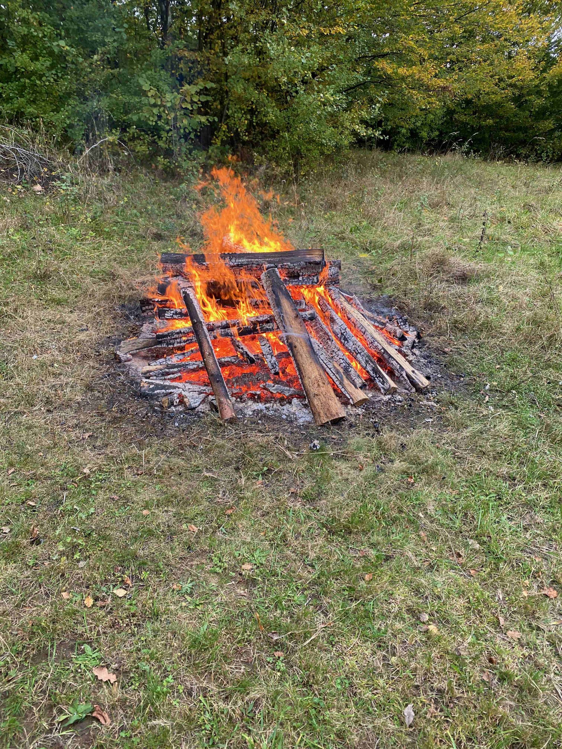 Um ausreichend Glut zu erhalten, benötigt man schon einen Raummeter oder auch mehr Holz.